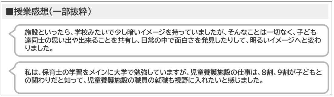 ここからは、開催後に取っているアンケートに記載をしていただいた学生の皆さんの感想を掲載していきたいと思います。