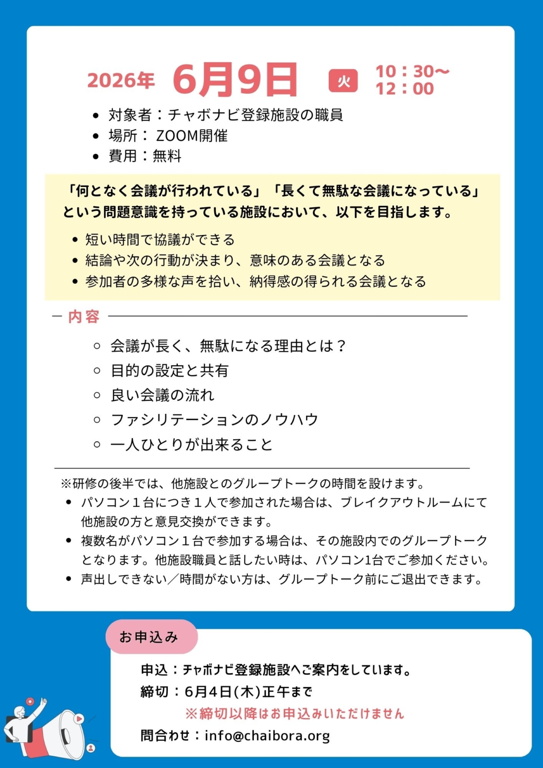 ◇対象者◇ チャボナビ登録施設の施設職員の方どなたでも